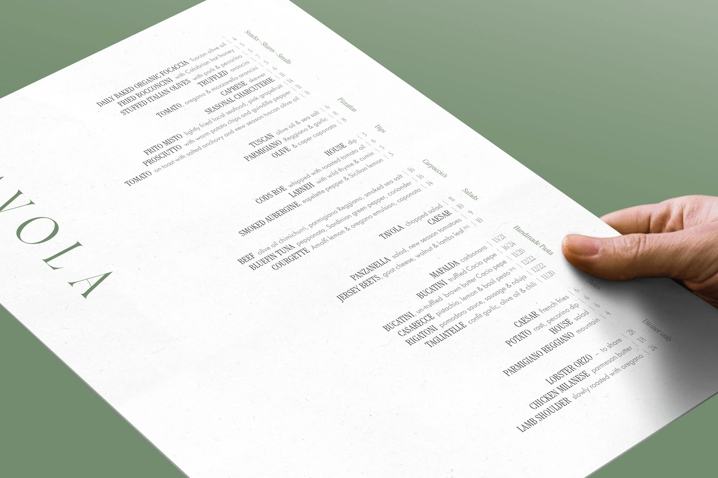 Fresh hand stretched pastaTavola | 2025Brand Identity | Menus A brand to encapsulate Simplicity. Quality. Italy.